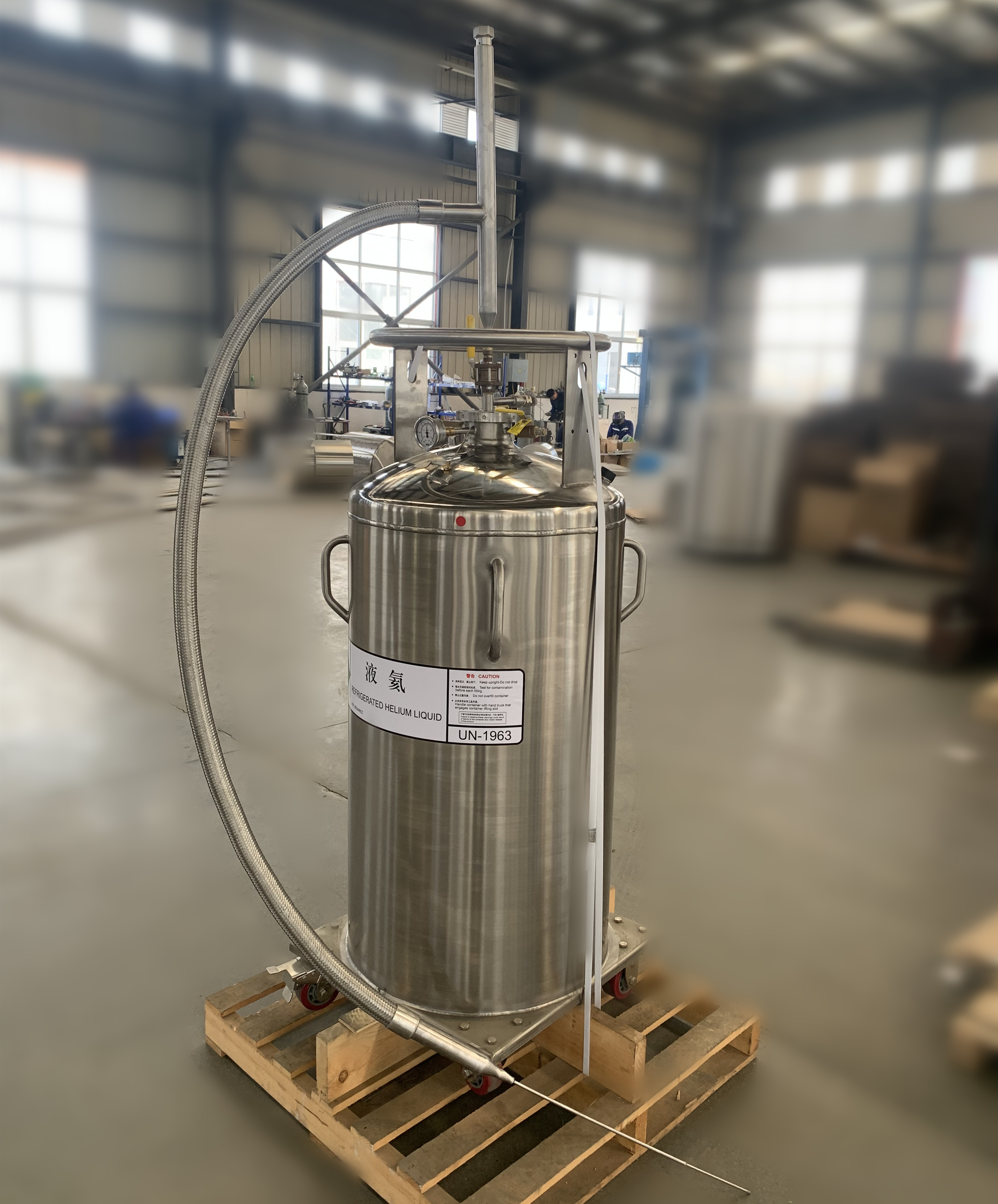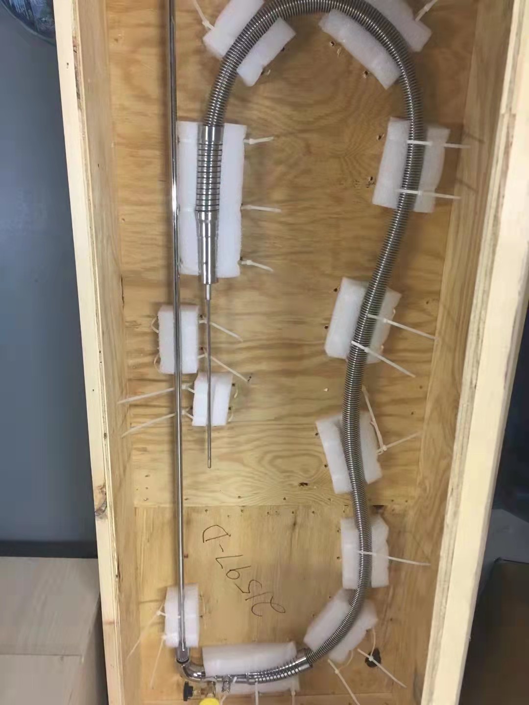 主要用來從大型液氦杜瓦瓶傳輸液氦至小型液氦杜瓦瓶,或者從用液氦杜瓦瓶為核磁做補(bǔ)液使用。根據(jù)客戶具體用途定制柔性管路和硬管具體長度。